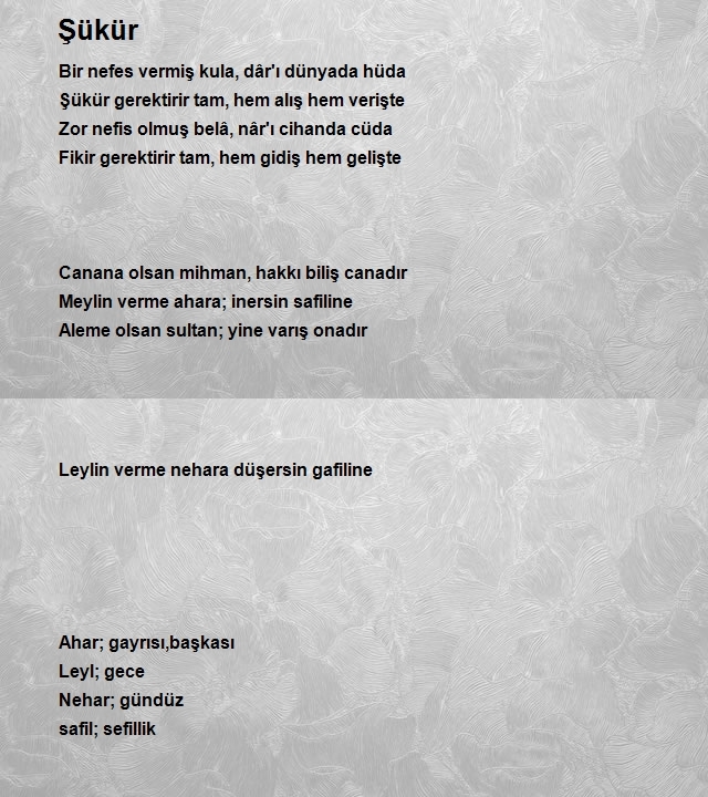 Bu şiire henüz hiç kimse yorum yapmadı. İlk yorum yapan sen ol!