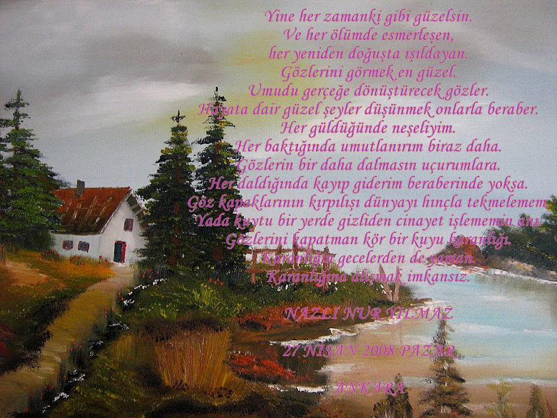 Sen unutmuş olacaksın. Sessizliğin bir iletişim olduğunu. Ama ben unutmadım. Yürekleri ikiye bölen. Mesafelere yoksulluğa. Ve … dahasına. Küfürler olduğunu ve hatta…! Nazlı Nur YILMA ***
